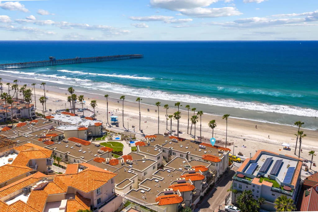 Live on the front row of the Pacific at an exceptional value in the highly sought-after San Miguel complex. Perfectly positioned directly on Oceanside’s iconic Strand, this rare single-level residence offers panoramic, unobstructed white water views—where crashing waves, passing surfers, and unforgettable sunsets become your daily backdrop. With no stairs to access, this ground-floor unit delivers true ease of living—ideal for everyday comfort, effortless entertaining, or a lock-and-leave coastal retreat. Step outside and you’re right on the sand, with the sights and sounds of the ocean right at your doorstep. This is a true blank canvas, presenting an incredible opportunity for a buyer to design and customize their dream beach home. Whether you envision a modern coastal escape or a timeless seaside retreat, the potential here is undeniable—and rarely available at this price point on the front row. San Miguel is one of Oceanside’s most desirable premier oceanfront communities—gated, meticulously maintained, and offering amenities including underground parking, elevators, and ocean-view spas. Just a short stroll to the Oceanside Pier, harbor, restaurants, coffee shops, and boutique shopping, this location puts you at the center of it all. Opportunities like this are few and far between—front row, single level, no stairs, and incredible value. Bring your vision and make it your own.